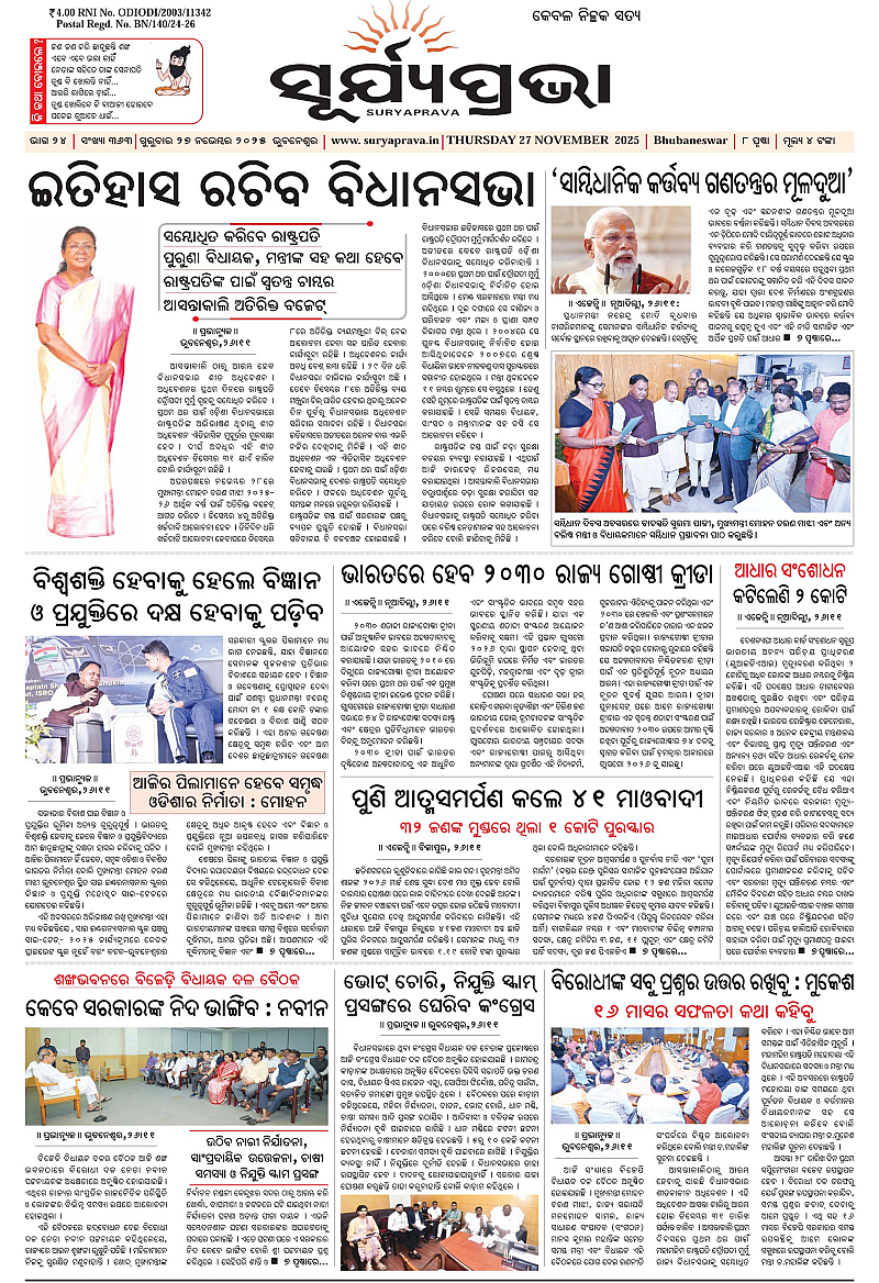 suryaprava 27.11.2025 November 27, 2025 suryapravaodisha-s-leading-daily-odia-newspaper 1 2 3 4 Page 1Page 2Page 3Page 4Page 5Page 6Page 7Page 8Page 9Page 10Page 11Page 12 × suryaprava 27.11.2025 Page 1Page 2Page 3Page 4Page 5Page 6Page 7Page 8Page APage AAPage EPage EE << First << 1 >> Last >> Page no 1Page no 2Page no 3Page no 4Page no 5Page no 6Page no 7Page no 8Page no 9Page no 10Page no 11Page no 12