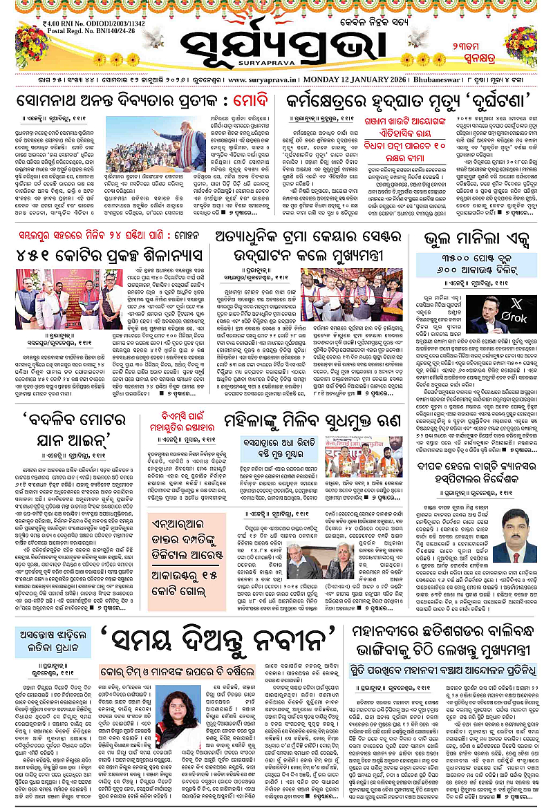suryaprava 12.01.2026 January 12, 2026 suryapravaodisha-s-leading-daily-odia-newspaper 1 2 3 4 Page 1Page 2Page 3Page 4Page 5Page 6Page 7Page 8Page 9Page 10Page 11Page 12 × suryaprava 12.01.2026 page 1page 2page 3page 4page 5page 6page 7page 8page Apage AApage Epage EE << First << 1 >> Last >> Page no 1Page no 2Page no 3Page no 4Page no 5Page no 6Page no 7Page no 8Page no 9Page no 10Page no 11Page no 12
