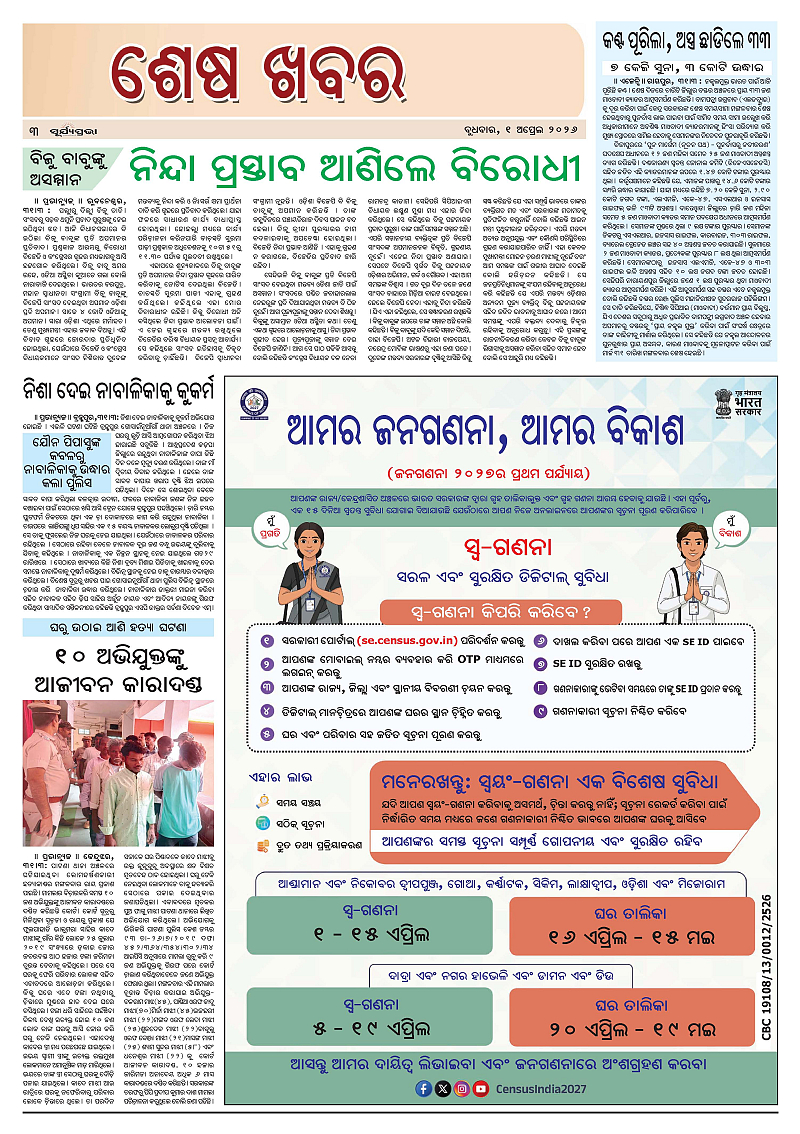 suryaprava 01.04.2026 Page: 3 April 01, 2026 suryapravaodisha-s-leading-daily-odia-newspaper 1 2 3 4 Page 1Page 2Page 3Page 4Page 5Page 6Page 7Page 8Page 9Page 10Page 11Page 12 × suryaprava 01.04.2026 Page 1Page 2Page 3Page 4Page 5Page 6Page 7Page 8Page APage AAPage EPage EE << First << 3 >> Last >> Page no 1Page no 2Page no 3Page no 4Page no 5Page no 6Page no 7Page no 8Page no 9Page no 10Page no 11Page no 12
